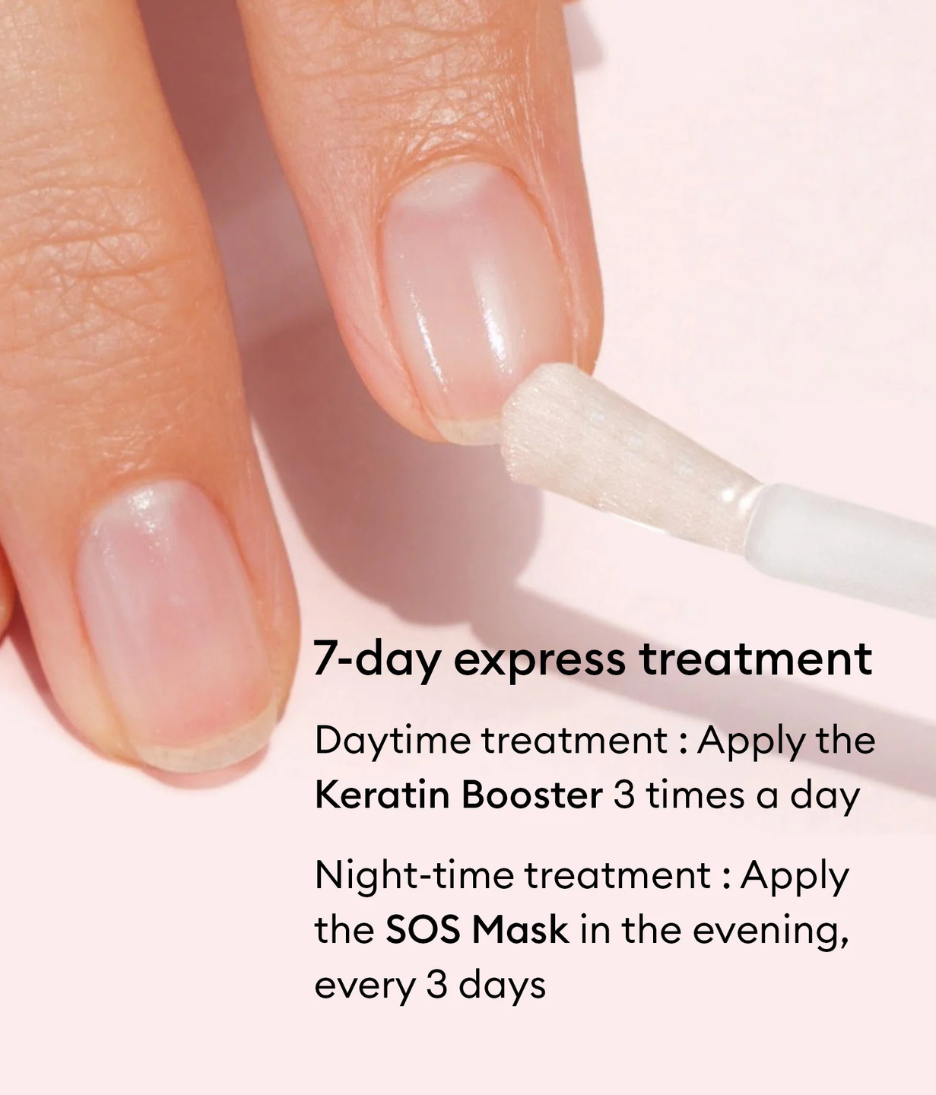 Apply a thin layer of SOS Masque to bare nails, leave on 5 minutes, then rinse. Use nightly for intensive repair or several times per week as maintenance.