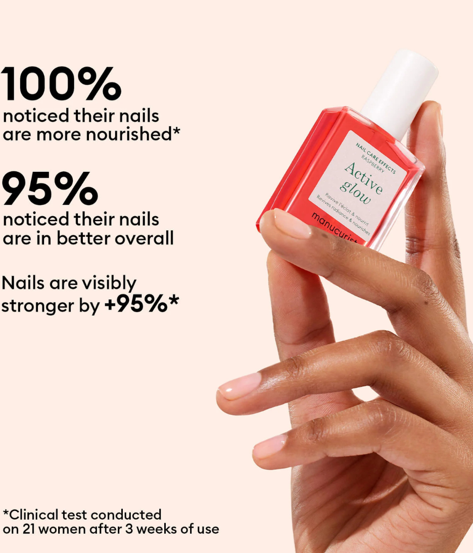 • The Gimme Glow Set pairs two Manucurist favourites for naturally radiant nails. Active Glow Raspberry delivers a sheer raspberry tint that boosts shine and gives the nail a healthy, fresh appearance, while its plant-based formula supports nail resilience with sweet almond oil, raspberry extract and glycolic acid. Huile Verte, a rich botanical oil blend, nourishes nails and cuticles with avocado, grape seed and sunflower oils, helping maintain moisture, flexibility and overall nail comfort. Together, they create a simple daily routine that leaves nails looking glossy, conditioned and effortlessly polished.