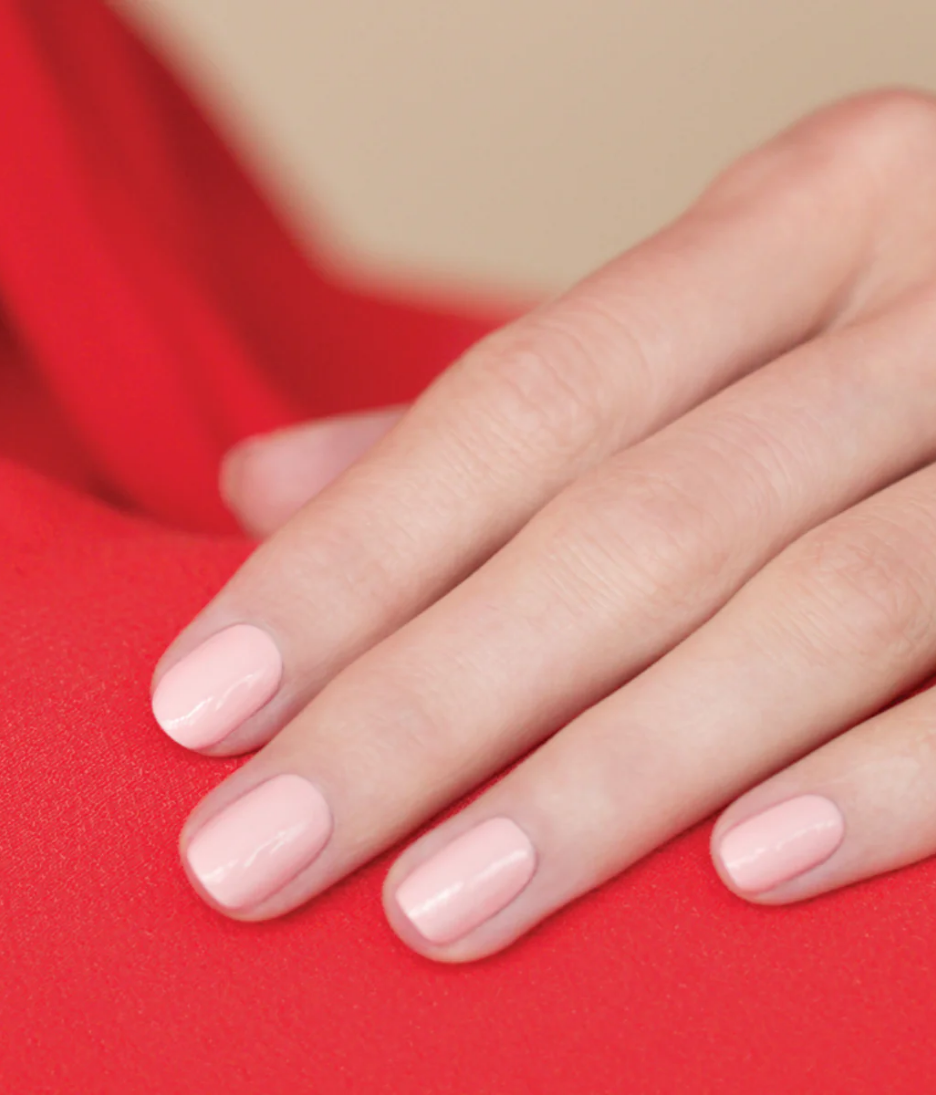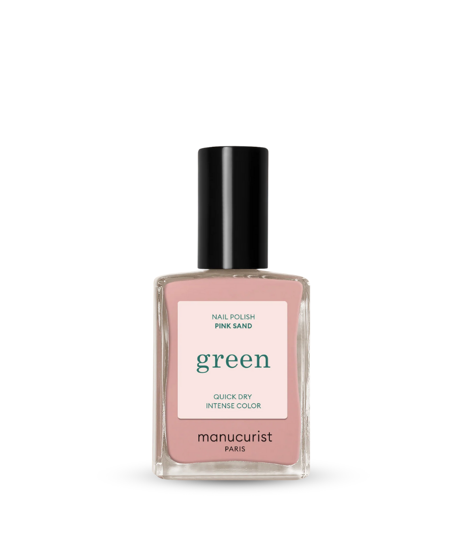 Soft nude-pink nail polish from Manucurist’s Green™ range with a glossy, long-wear finish and up to 84% bio-sourced, lead-free ingredients.