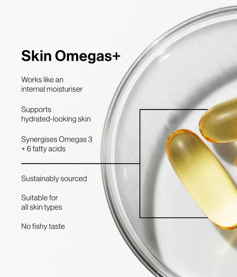 Youth-boosting duo with full-size Skin Omegas+ (180 capsules) and Skin Youth Biome™ (30 capsules) designed for smoother, hydrated, radiant skin.