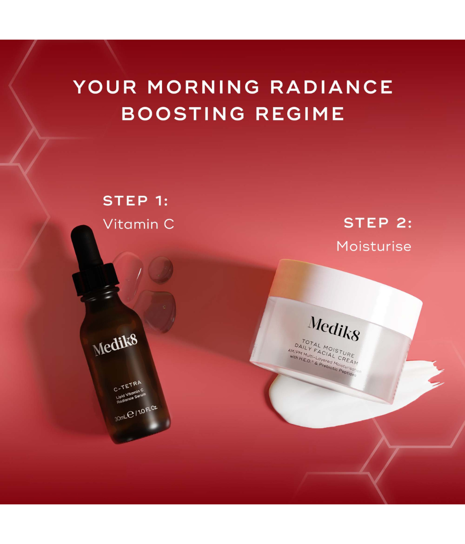 • Morning apply C-Tetra, then follow with Total Moisture cream; evening use Total Moisture cream alone.