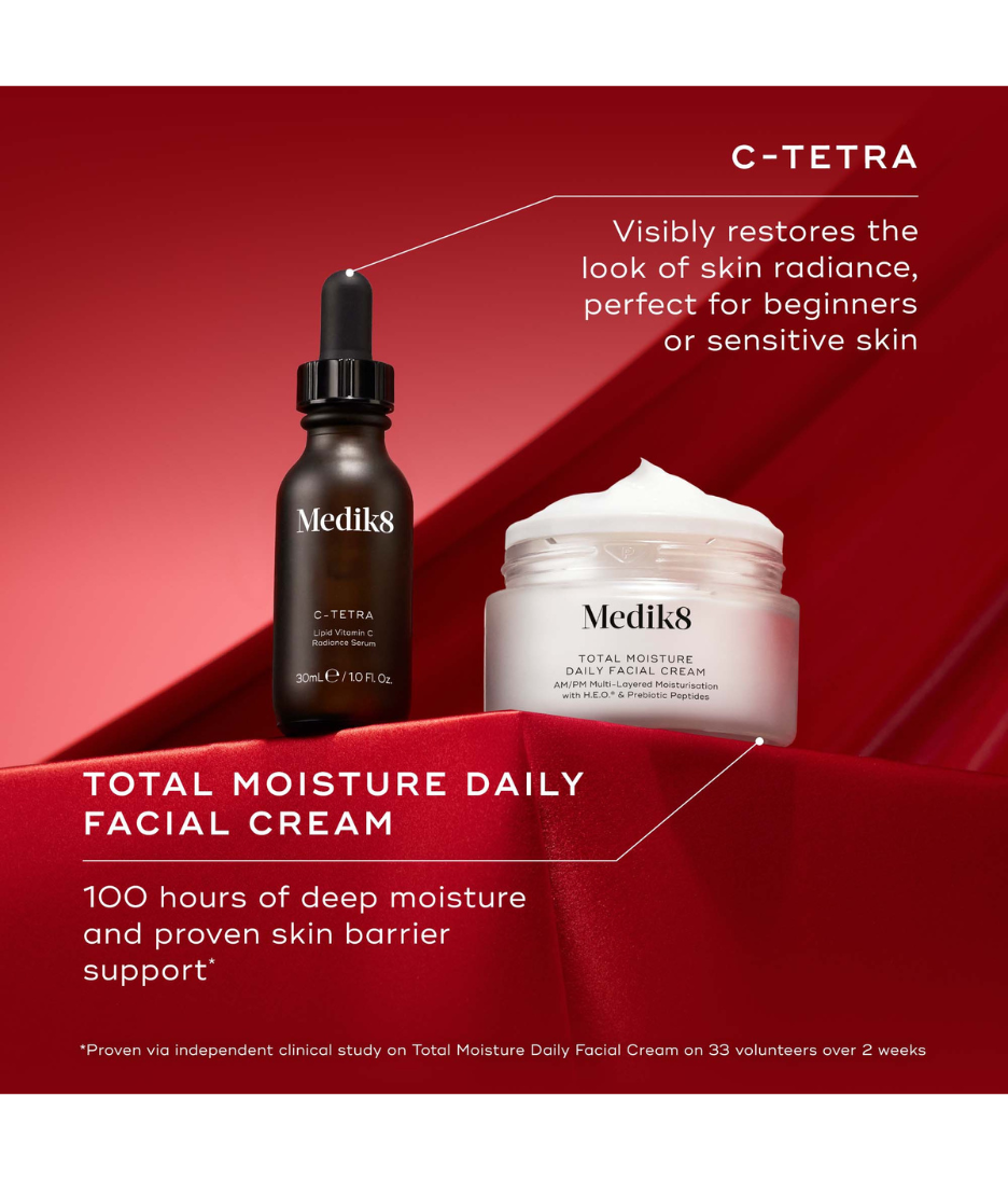 • This brightening and barrier-boosting set features C-Tetra (a stabilised form of vitamin C) and the Total Moisture Daily Facial Cream. Together they even skin tone, enhance radiance and replenish moisture for skin that looks visibly healthier, smoother and more resilient.