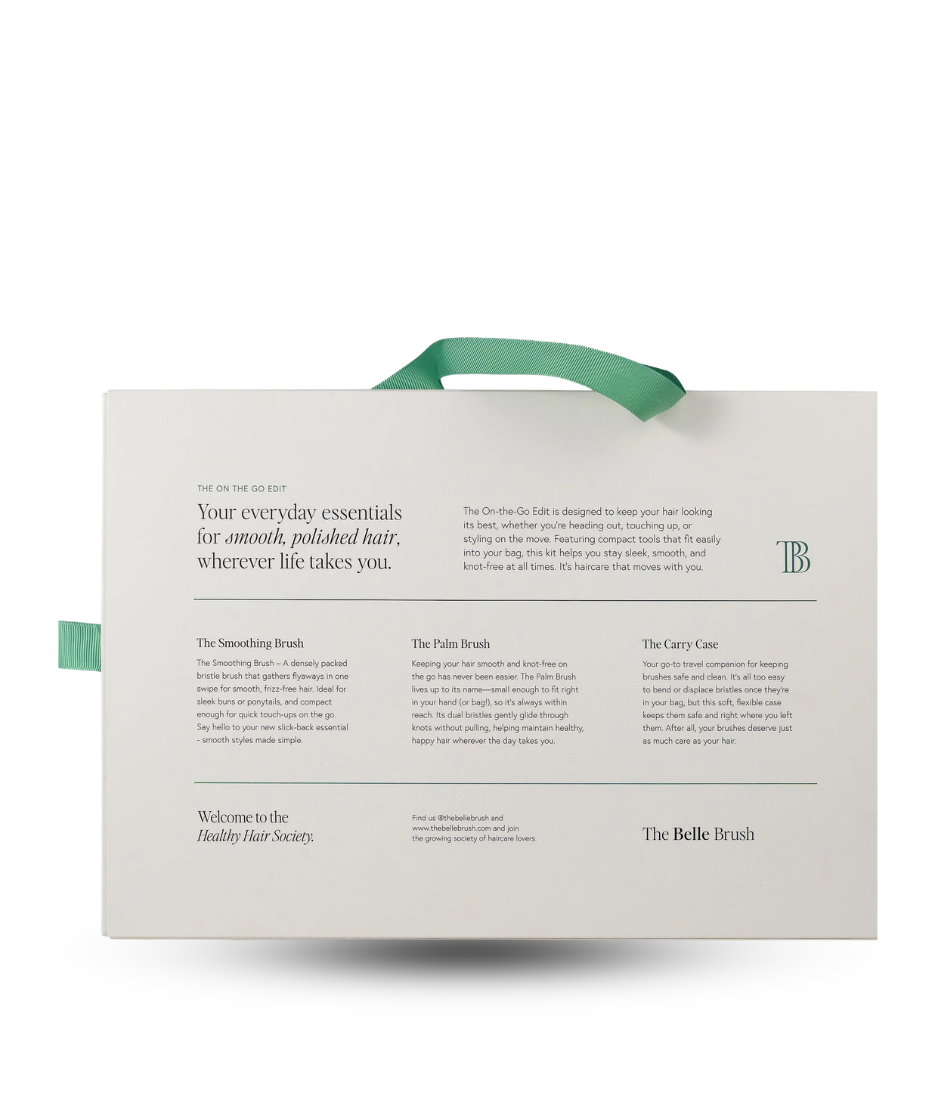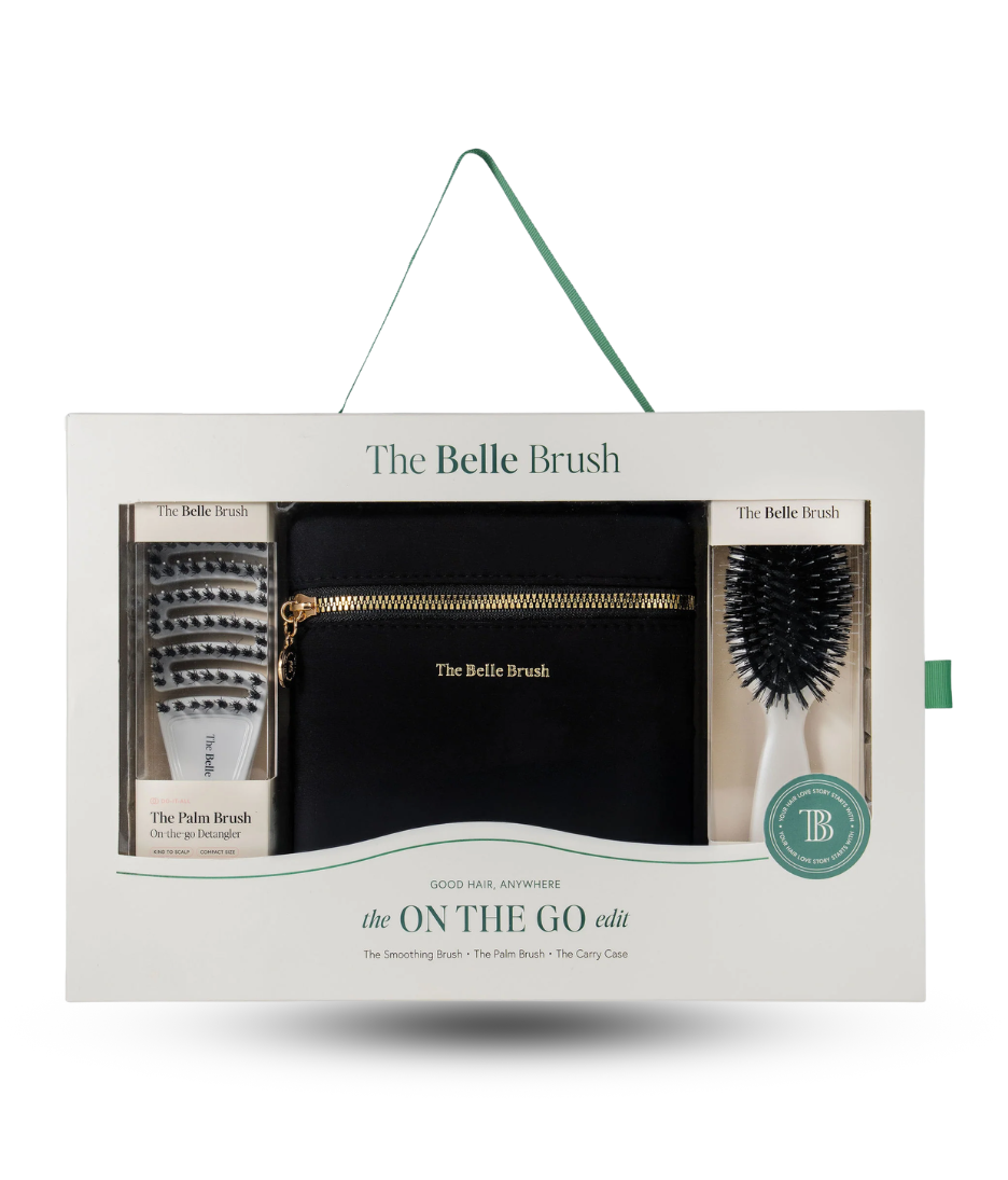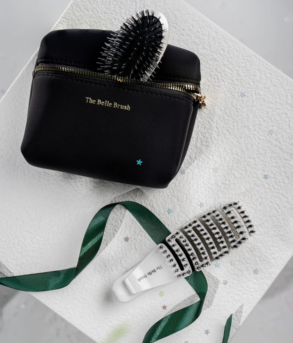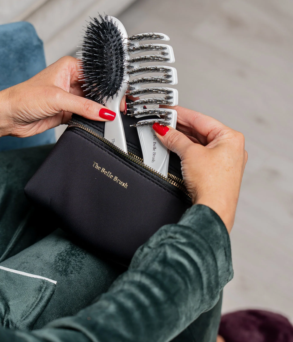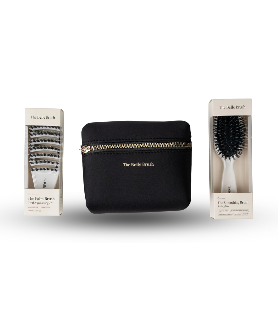 Luxury compact hair brush set designed to detangle, smooth and reduce frizz while travelling or on the go.